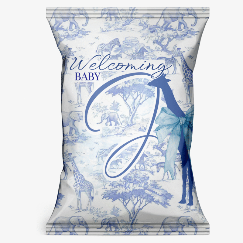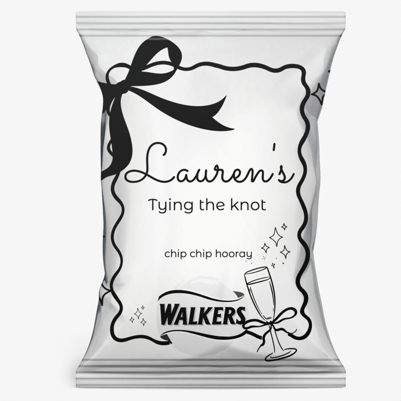 Personalised crisp / chip bag perfect for the trendy Black and white modern theme. A custom addition to a baby shower, baptism or party. A favour guests can enjoy!