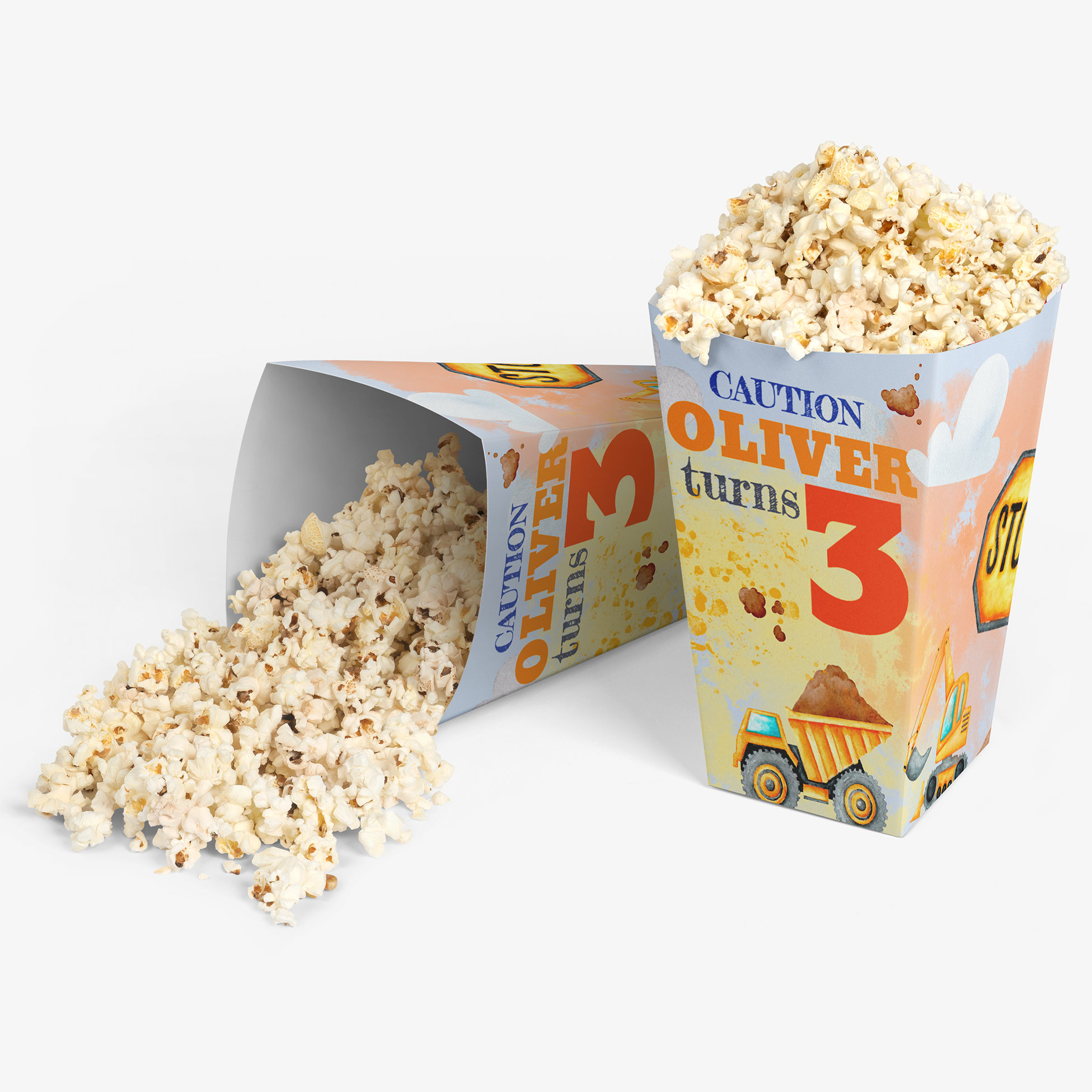 Digger themed personalised popcorn box