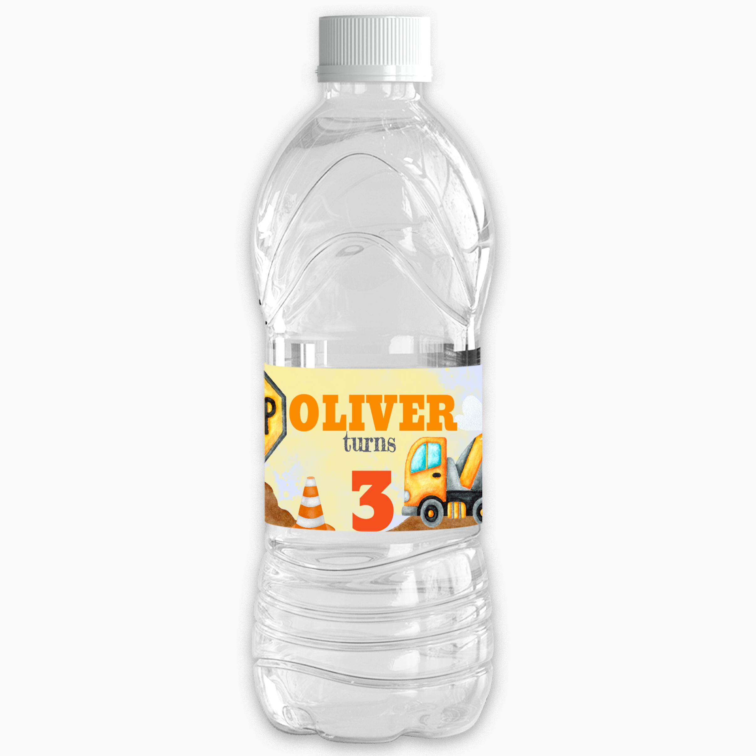 Custom design themed water bottle wrappers that bring your party theme to life! Perfect addition to your themed event. Personalise your water bottle to fit a digger themed event.