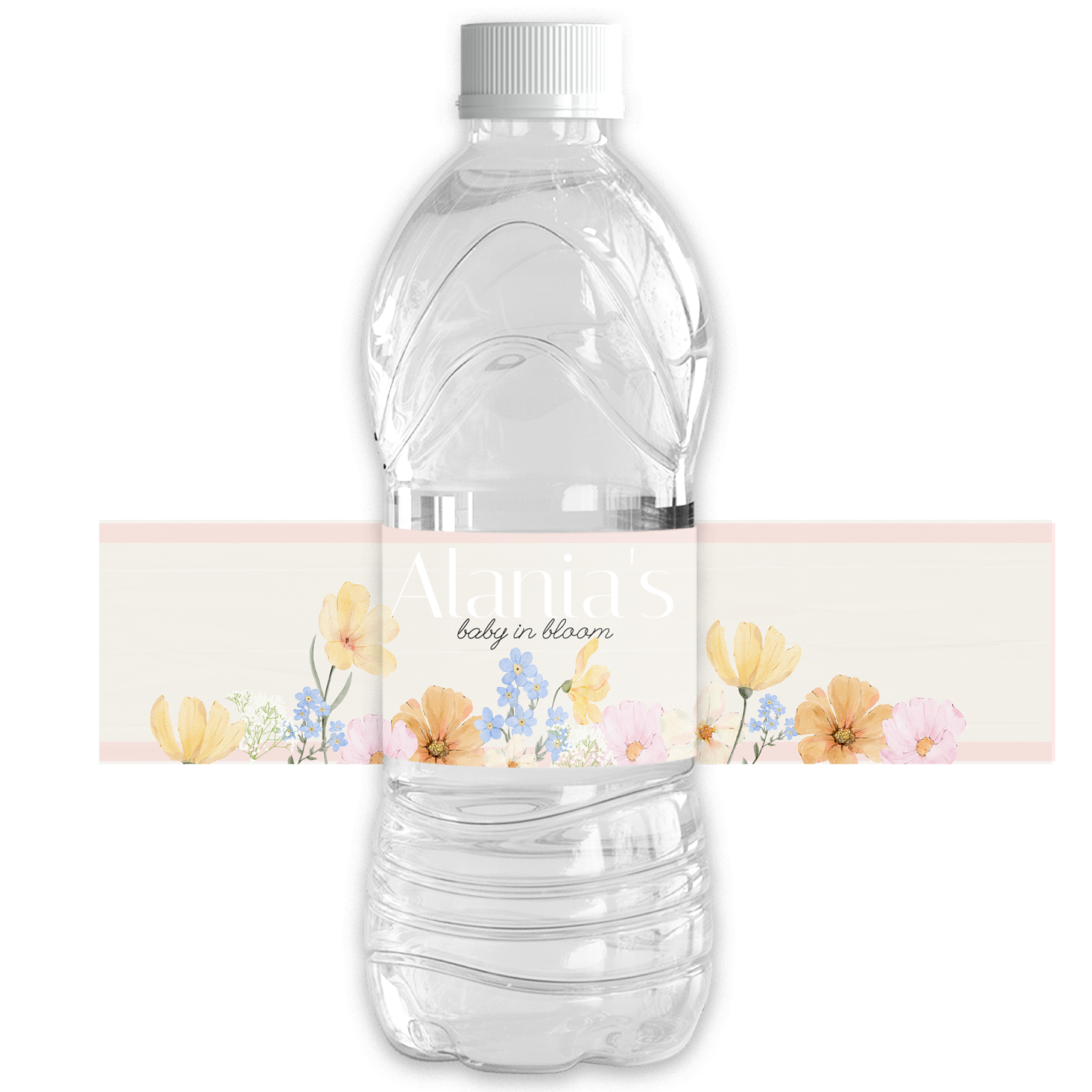 Order your custom floral themed water bottle wrappers that bring your party theme to life! Perfect for the girly occasion. Personalised for your event.