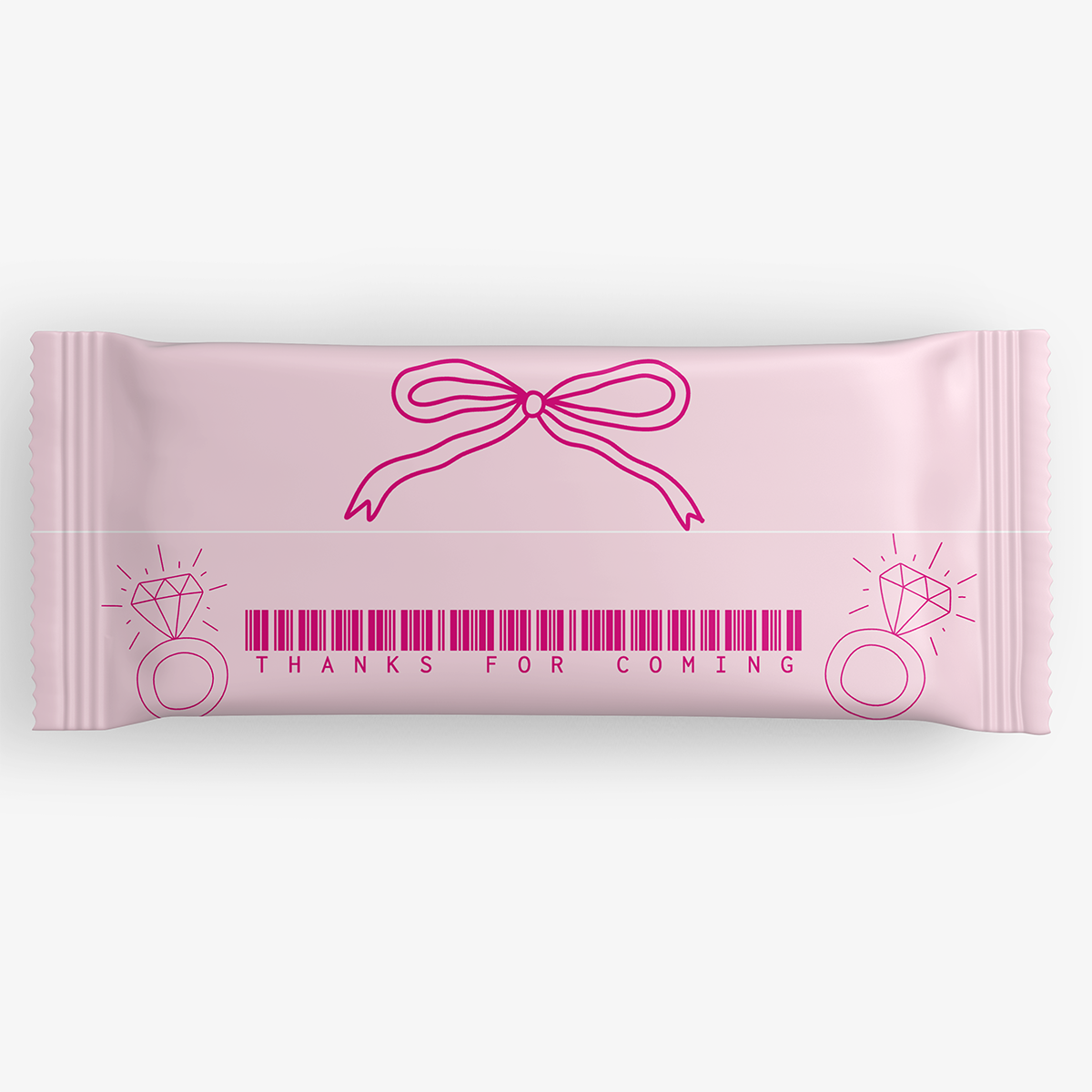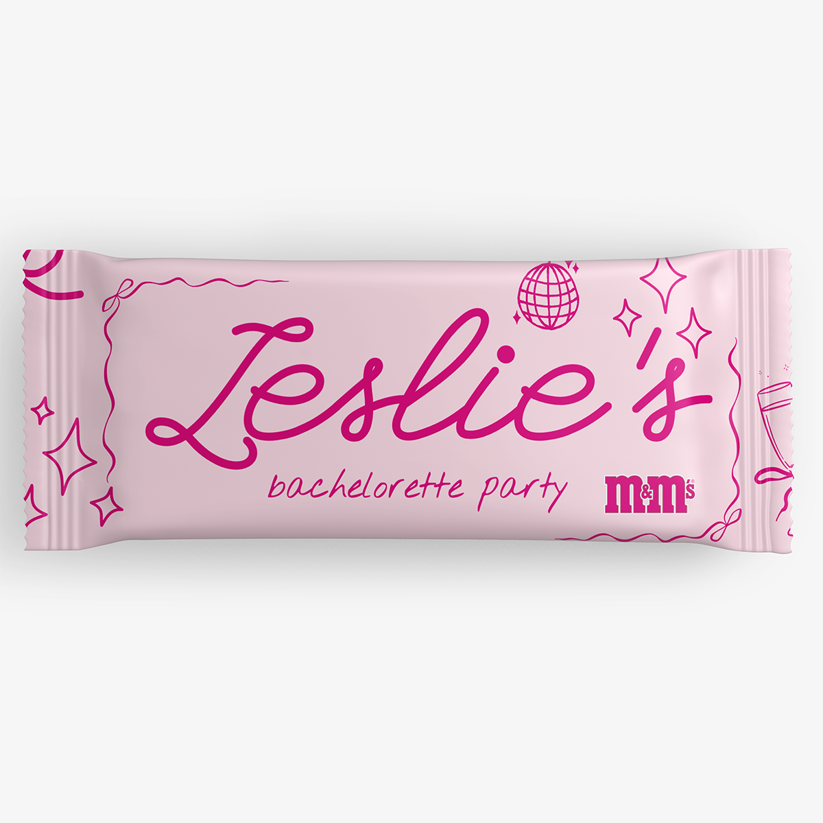 Celebrate in style with a personalised candy bar wrapper for your bachelorette or birthday party! This custom pink wrapper features the bride-to-be’s name and fun girly graphics, perfect as a unique party favour or girls’ night treat.
